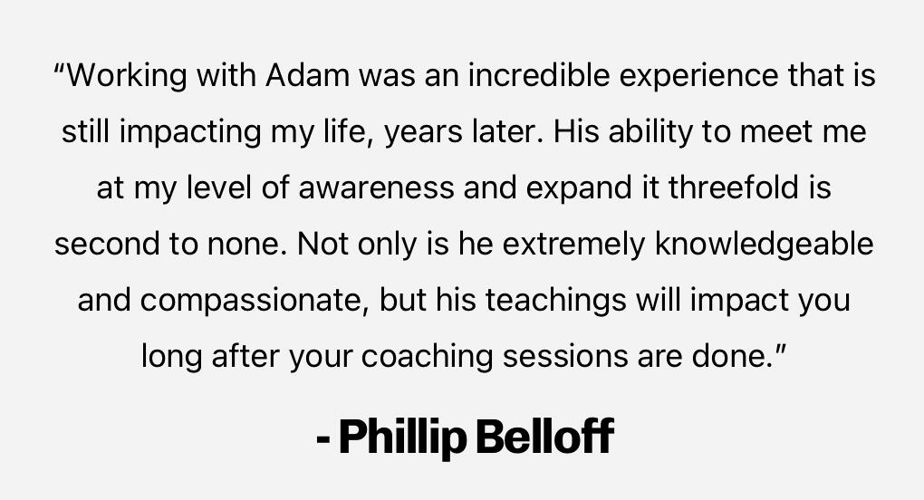 Schedule a 1:1 discovery call with Adam to see if we're a good fit to work together and transform your life.